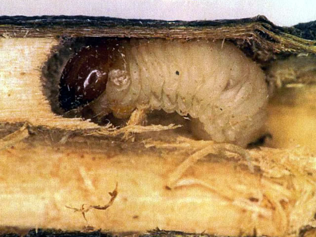 ポプラを食害するヤナギシリジロゾウムシ幼虫