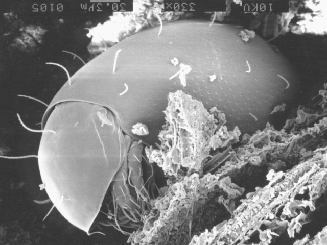 説明 ササラダニは、ダニ目の中の隠気門亜目と呼ばれるグループに属している。ダニの仲間なので昆虫とは違い、体は前体部と後体部の2つに分かれていて、成体の足の数は4対8本である。主に落葉層や、土壌中に多くいて、個体数密度は数千から数万個体/m2にのぼり、トビムシと並んで土壌節足動物の中でもっとも個体数の多いものの一つである。体長は大きくて数ミリ程度で、茶か、白の体色のものが多い。ダニというと、人の体について血をすったり、部屋の中にいてアレルギーの元となったりすることで悪いイメージを持たれがちであるが、ササラダニはそうした悪名高きダニとは別のグループのダニである。ササラダニは、土壌中の有機物や菌類を食べたり、微生物と相互作用を持つことにより、有機物の分解過程や養分循環において重要な役割をもつとされている。 |