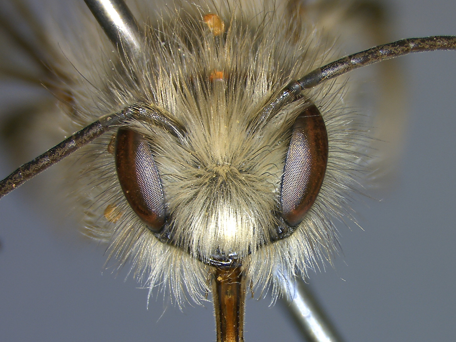 Body color black, with hairs brown to grayish brown in female, while grayish brown to grayish white in male. Female clypeus with a large triangular indentation.